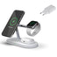 Specification: 1. Input parameters: Dc9v --- 4a; 12v 2.5a 2. Output power: Magnetic charging 10w compatible with 7.5w 5w; base mobile phone 15w compatible with 10w 7.5w 5w, earphone: 2w; watch: 3w; night light 2w; usb wired output 10w 3. Conversion efficiency: Greater than 73% 4. Transmission distance: Charging distance ≤ 8mm 5. Product size (mm): 175*120*85 7. Product color: White and black 8. Product material: Abs+zinc alloy and magnetic three-in-one wireless charger ce fcc rohs